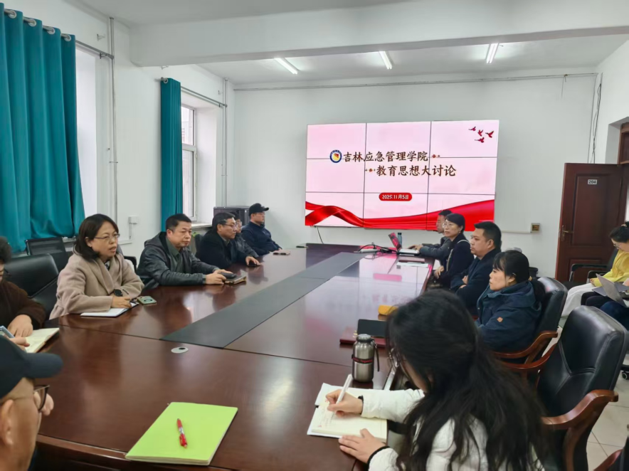 按照学校教育思想大讨论实施方案的指导思想和总体要求,为完善立德树人机制,深化教育教学改革,推动应急管理人才培养与国家战略和区域产业发展需求深度适配,吉林应急管理学院结合学院实际工作,组织召开教育思想大讨论研讨会。讨论围绕“应急特色学院建设、2026版人才培养方案修订”等核心议题展开深入研讨,紧扣学校实施方案要求深入交流,凝聚育人共识。学院领导班子成员、各系主任、骨干教师及青年教师代表参加会议。